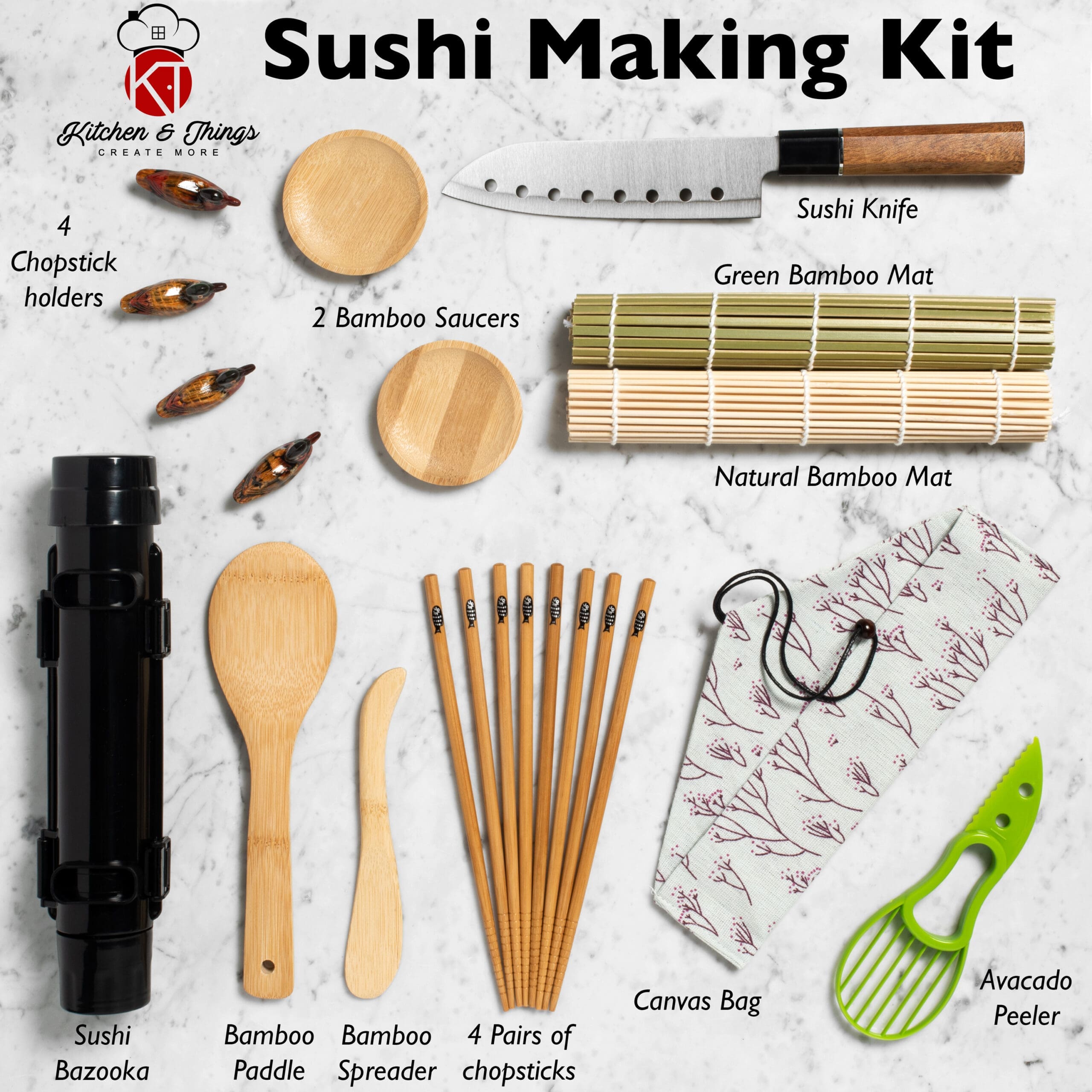 Layout of all included parts or accessories.